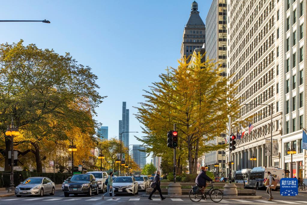 11月2日,行人穿過美國芝加哥密歇根大街。