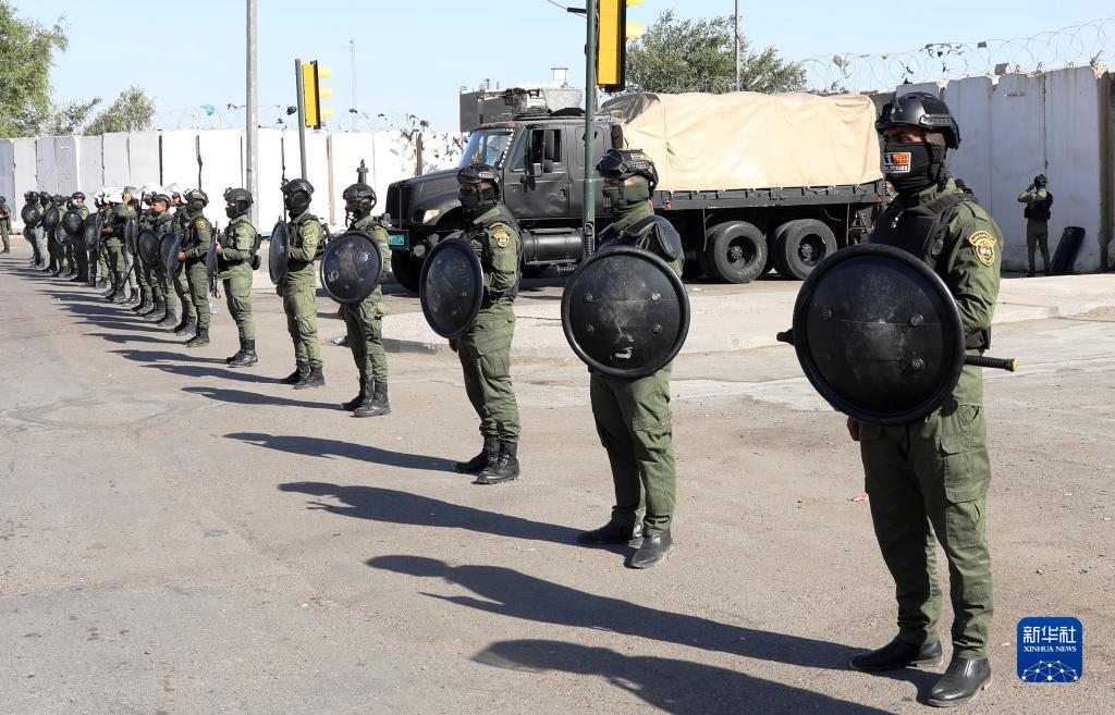 11月7日,防暴警察在伊拉克巴格達“綠區”附近警戒。