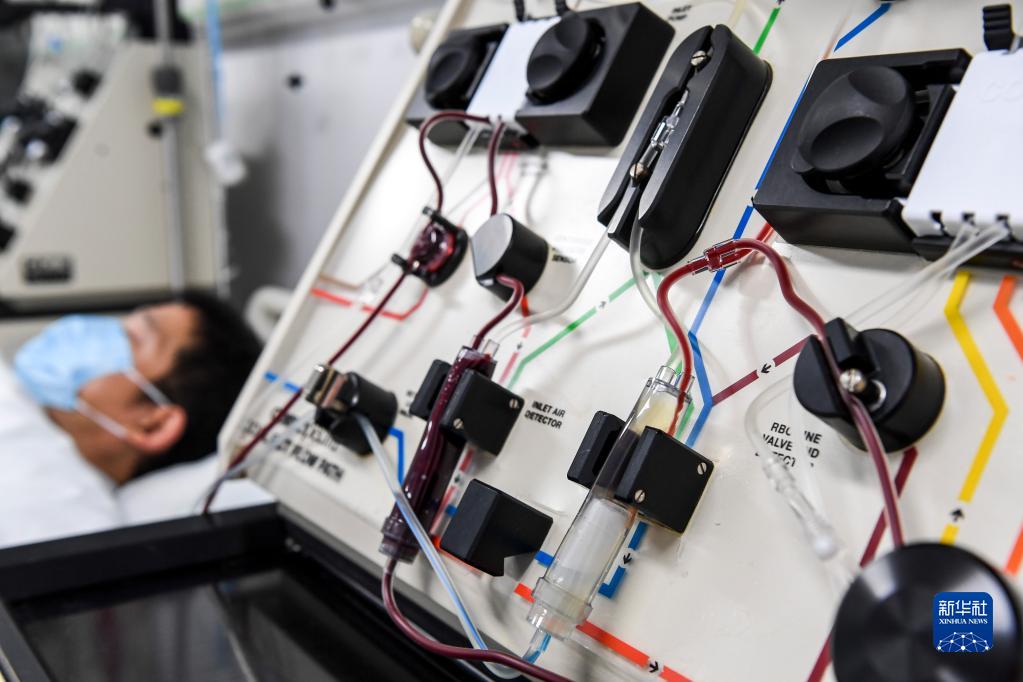 在廣西醫(yī)科大學(xué)第一附屬醫(yī)院,李醫(yī)生在捐獻(xiàn)自己的造血干細(xì)胞(2021年11月攝)。