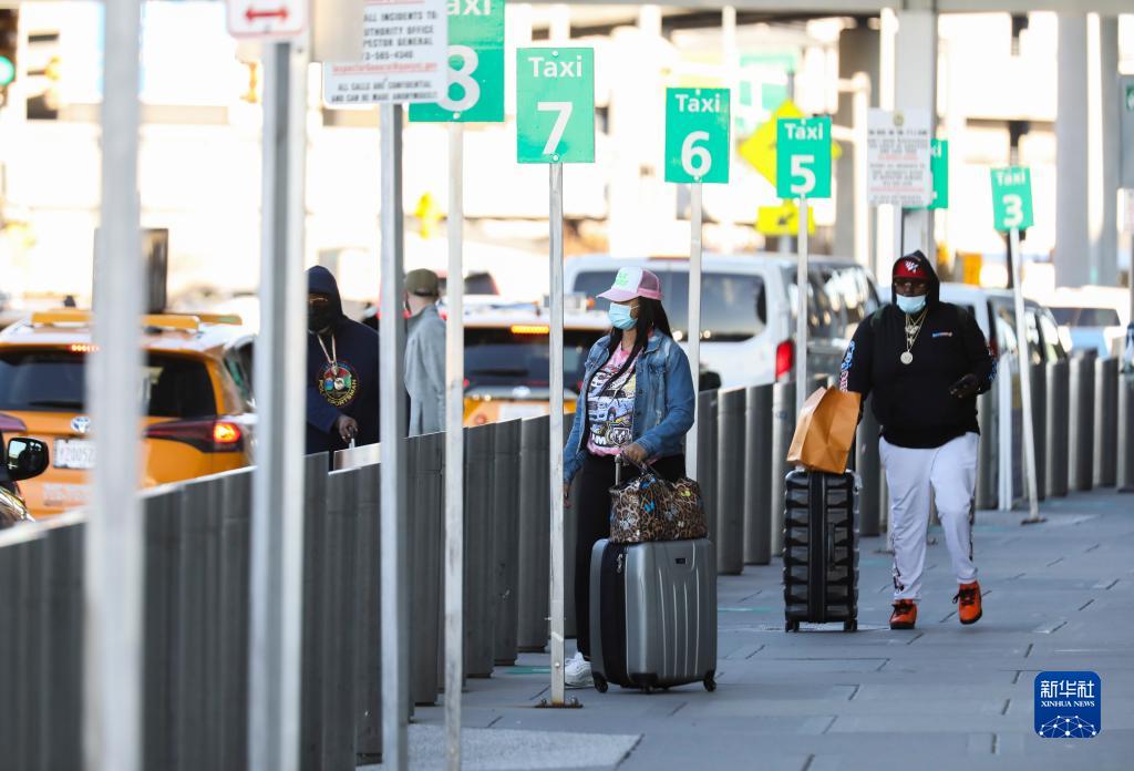 11月8日,旅客在美國紐約肯尼迪國際機場乘坐出租車。