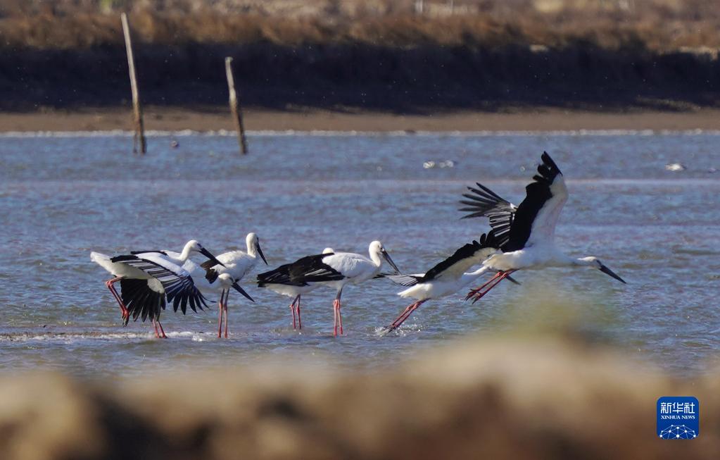 近日,大批南遷的東方白鸛飛抵河北省唐山市曹妃甸濕地休息、覓食。據介紹,該地2020年以來不斷加強濕地保護力度,曹妃甸濕地逐漸成為國家一級保護動物東方白鸛的重要棲息地。