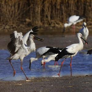 大批東方白鸛飛臨河北曹妃甸