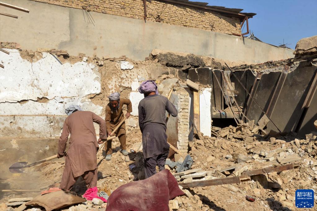 11月15日,在阿富汗坎大哈,人們清理打擊“伊斯蘭國”武裝分子行動后的房屋廢墟。