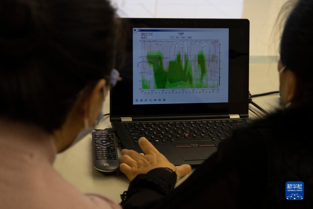 11月21日晚,在雞西市氣象局,工作人員在進(jìn)行天氣監(jiān)測(cè)。