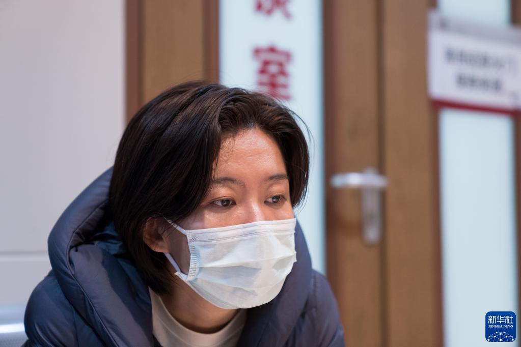 11月15日,在北京大學腫瘤醫院肝膽胰外一科手術室外,吳姝在等待媽媽手術結束。