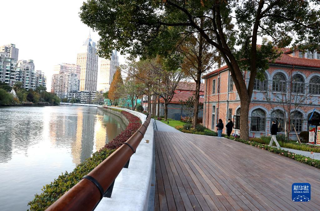 12月1日,游人在蘇州河畔的華東政法大學濱河步道休閑。