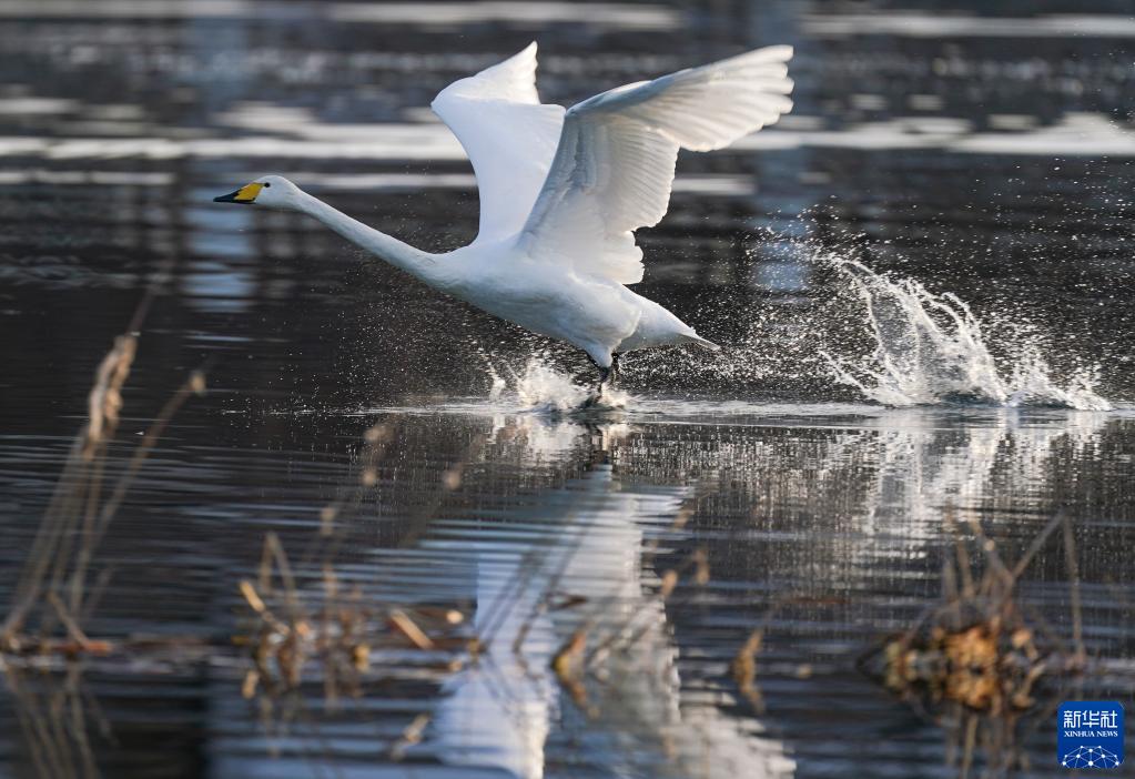 近日,一群天鵝在北京市密云區(qū)太師屯鎮(zhèn)清水河棲息覓食、嬉戲追逐,成為冬日里的美麗景觀。