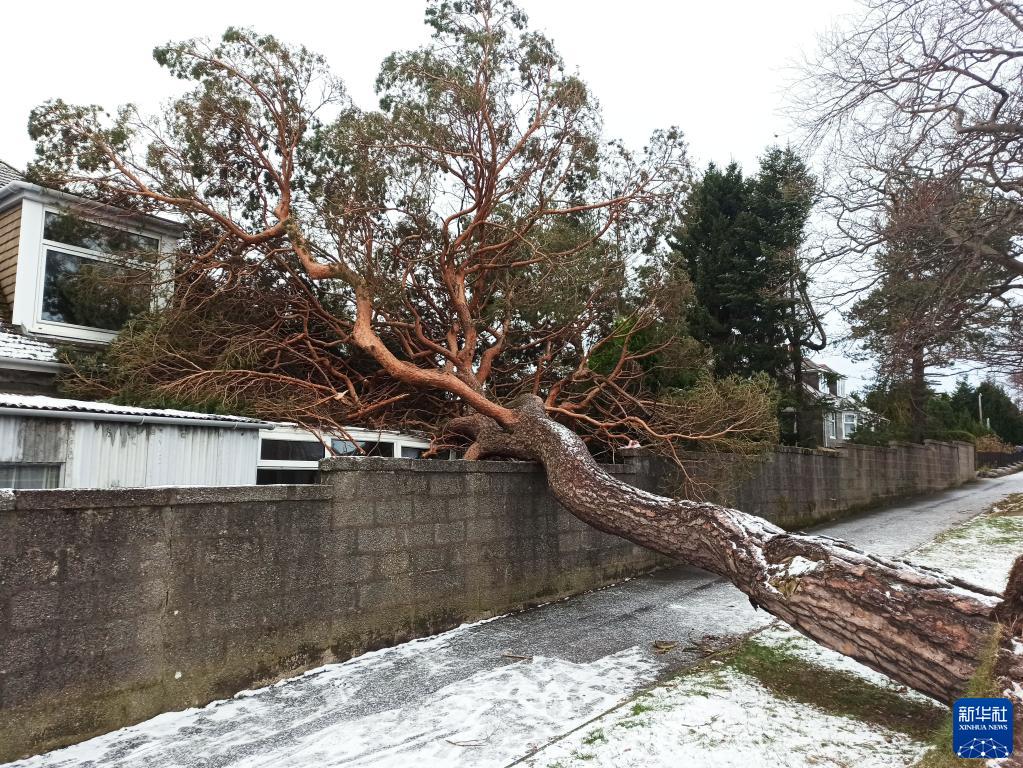 12月8日,在英國蘇格蘭北部城市阿伯丁,大樹被吹倒。