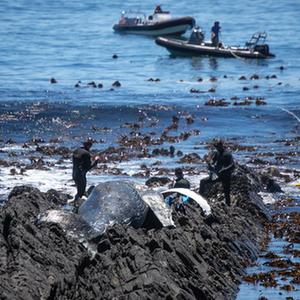 南非開普敦:清理海邊鯨魚尸體