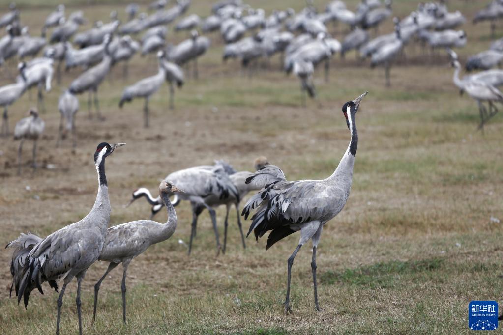 12月9日,一群灰鶴在以色列阿格蒙胡拉鳥類和自然公園的濕地里休息。