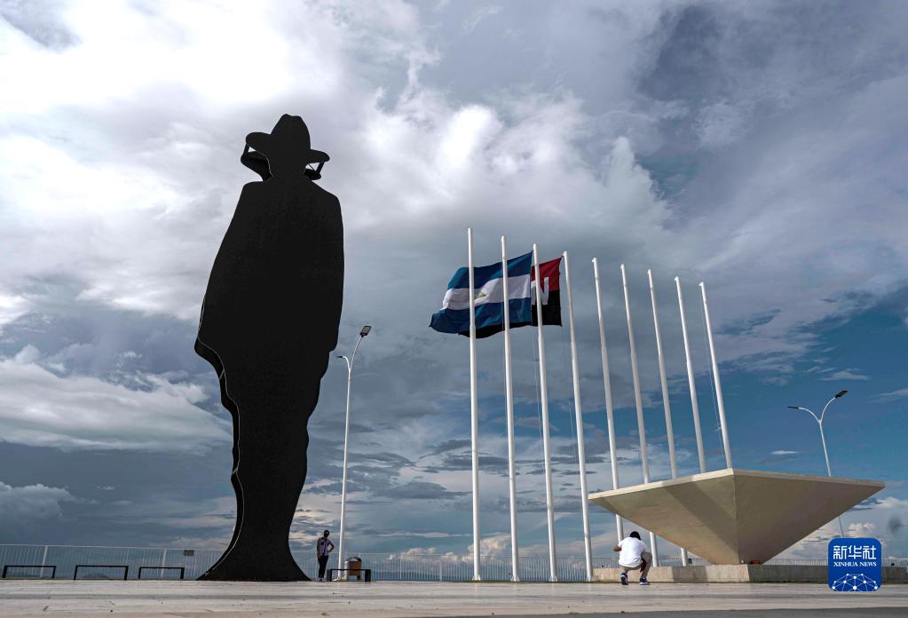 這是9月20日在尼加拉瓜首都馬那瓜的蒂斯卡帕公園拍攝的尼加拉瓜民族英雄桑地諾雕像。