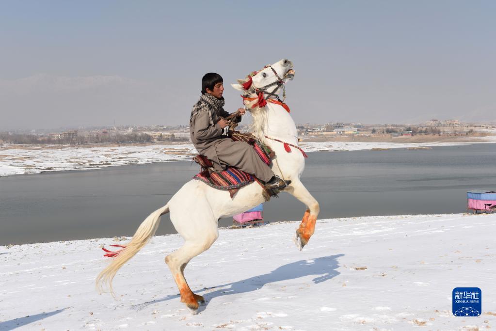 12月16日,一名男子在雪后的阿富汗喀布爾騎馬。新華社發(塞夫拉赫曼·薩菲攝)