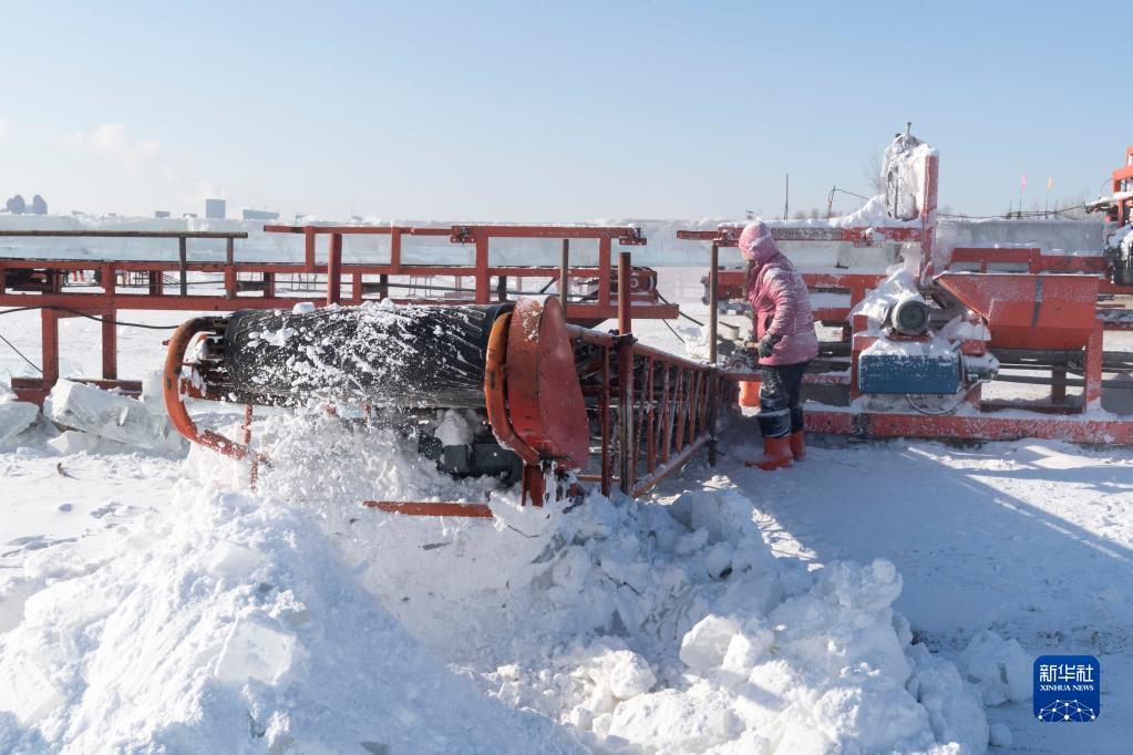 目前,黑龍江哈爾濱冰雪大世界的采冰和建設工作正加緊進行。為保證足夠的優質冰供給,采冰人每天在松花江哈爾濱段封凍的江面上裁冰、采冰。