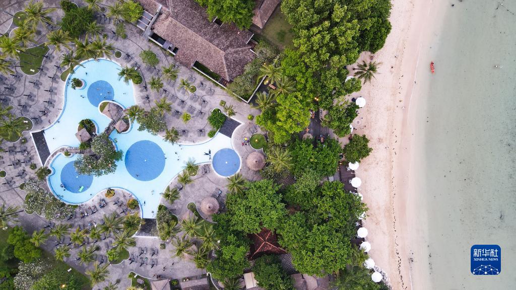 這是12月18日在印度尼西亞巴厘島拍攝的努沙杜瓦海灘(無人機拍攝)。