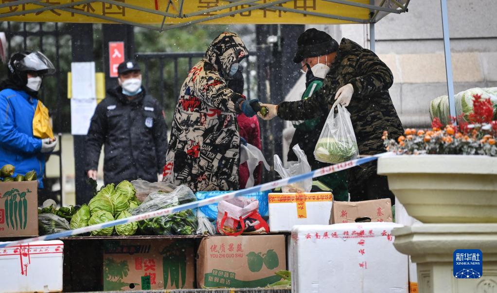 12月25日,西安市碑林區一封控小區的大門旁,開辟了蔬菜市場,方便市民選購。