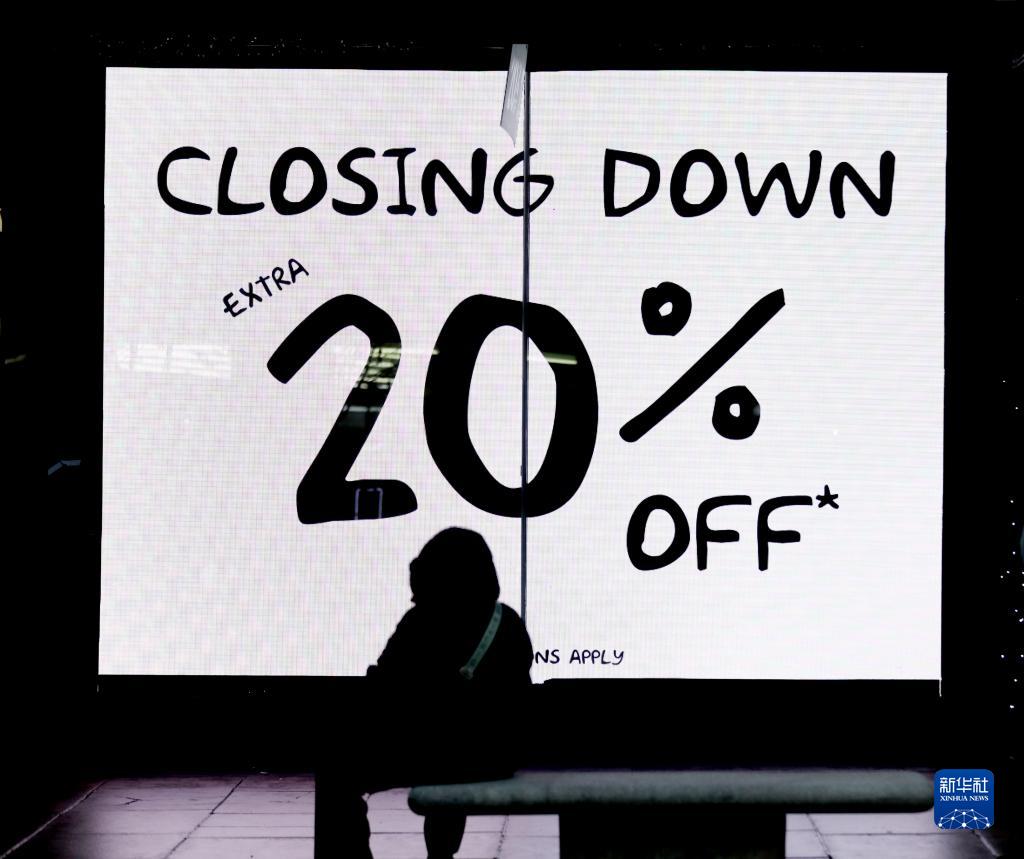 12月26日,市民坐在英國倫敦牛津街一家商店的打折信息電子屏前。