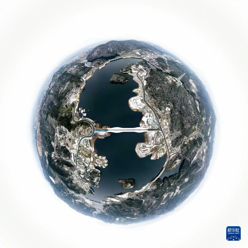 12月28日在貴州省都勻綠博園拍攝的雪景(無人機(jī)全景照片)。