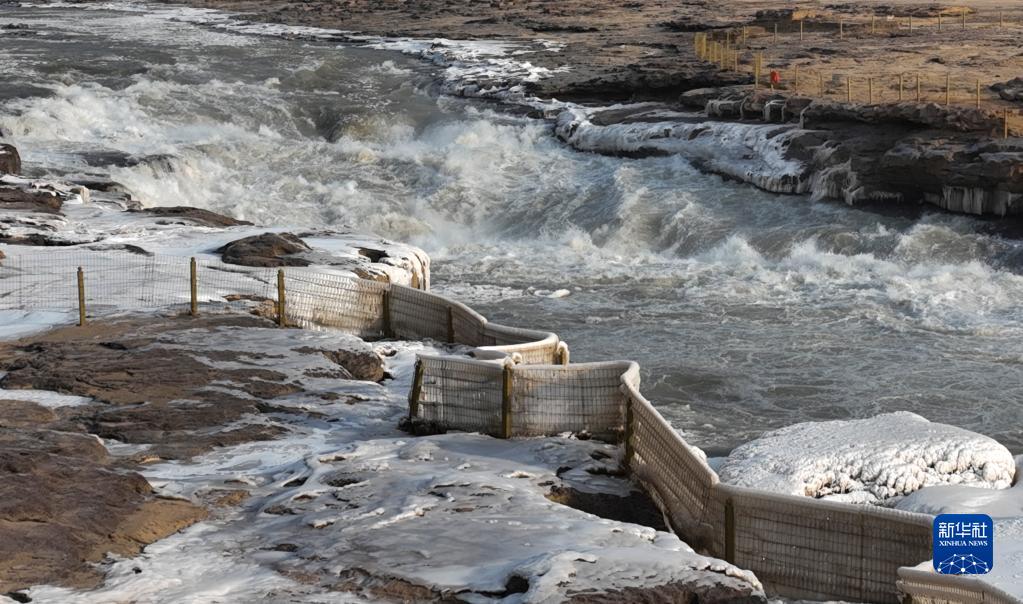 近日,隨著氣溫逐漸降低,黃河晉陜峽谷流凌密度持續增大,大量流凌堆積,壺口段流凌封河的速度明顯加快,壺口瀑布往日30余米高的落差降低至2米左右。