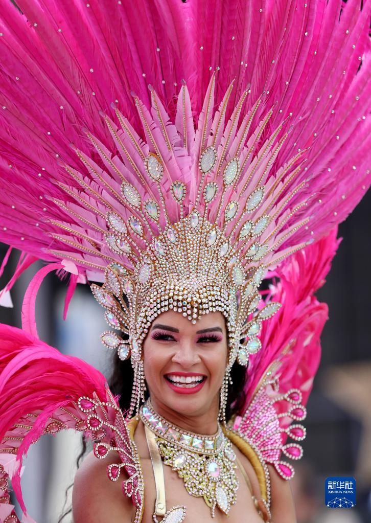2022年1月1日,一名舞者在英國倫敦參加新年游行活動。