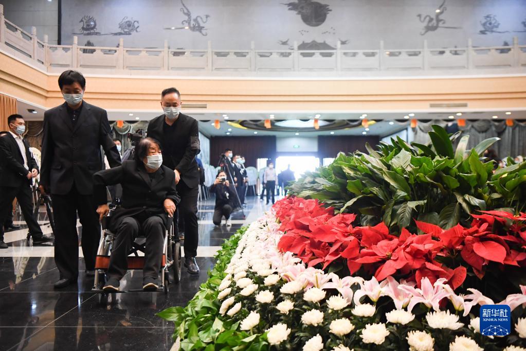 2021年5月24日,袁隆平遺體送別儀式在湖南省長沙市明陽山殯儀館舉行。這是袁隆平的夫人鄧則(中)在遺體送別儀式現場。2021年5月22日,“雜交水稻之父”、“共和國勛章”獲得者、中國工程院院士袁隆平因病醫治無效,在長沙與世長辭,享年91歲。