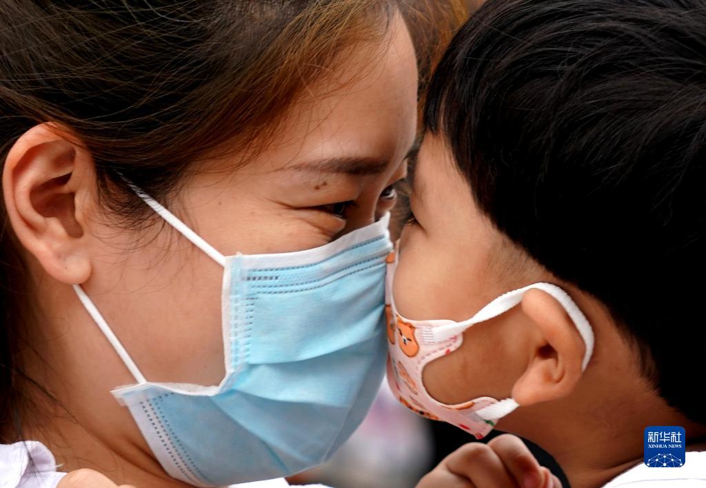 2021年8月28日,鄭州市發布通告,對部分區域疫情風險等級進行調整,對封閉、封控區域全部解除。在鄭州市二七區京廣路街道,市民李靜在解封后與多日未見的孩子親密互動。