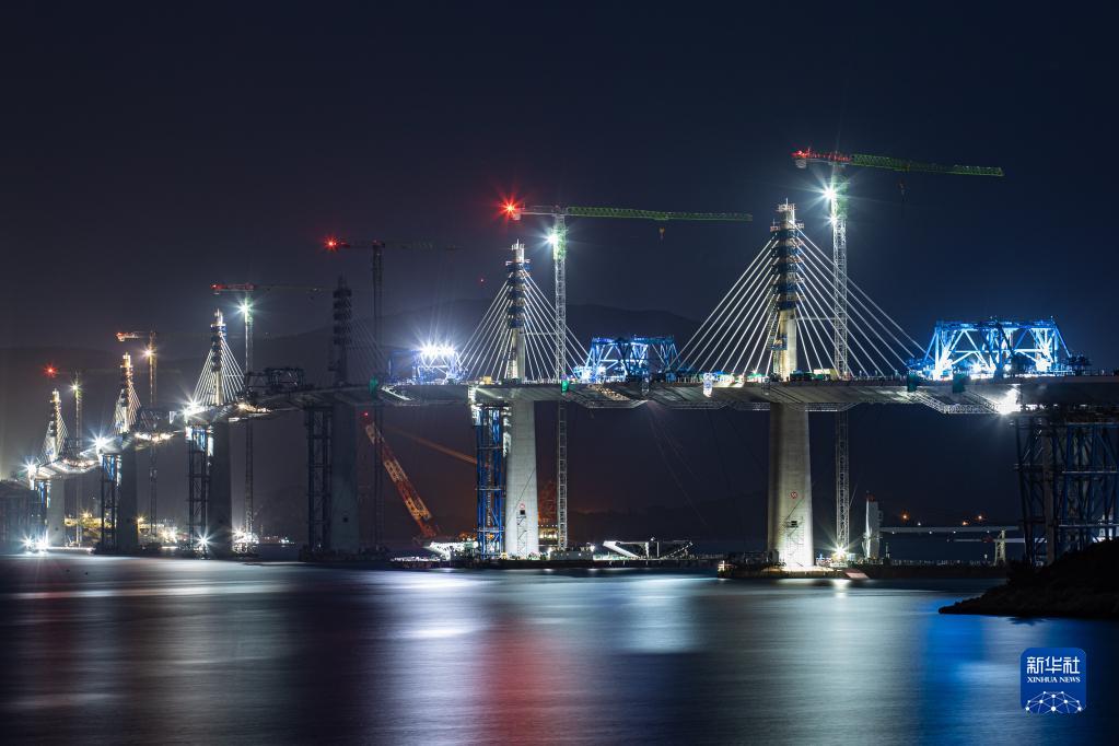 這是2021年6月22日在克羅地亞南部的科馬爾納村附近拍攝的佩列沙茨大橋施工現場。由中國企業承建的克羅地亞佩列沙茨跨海大橋2021年7月28日成功合龍。