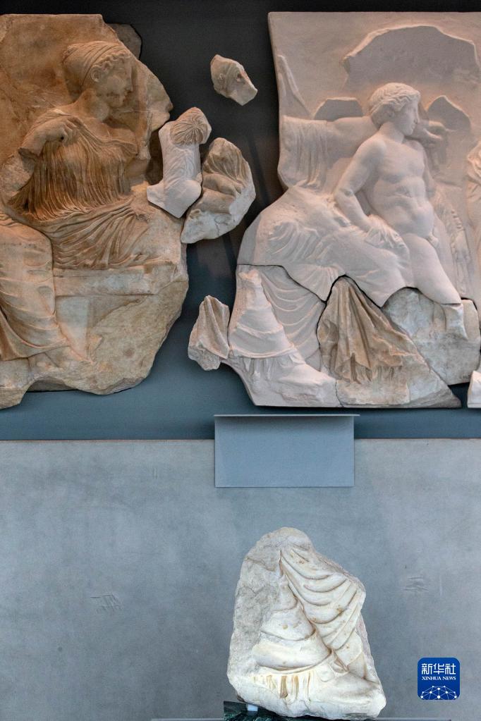 在意大利和希臘兩國博物館簽署長期租借協議后,原保存在意大利一家博物館的一塊雅典衛城帕特農神廟石雕碎片10日在希臘雅典衛城博物館展出。
