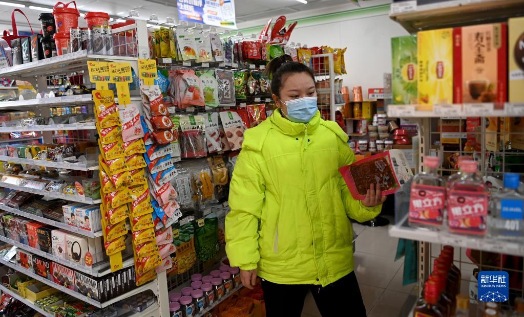1月11日,西安市碑林區(qū)南稍門一家便利店內(nèi),市民在進(jìn)行選購。店內(nèi)要求同時(shí)購物人數(shù)不能超過5人。
