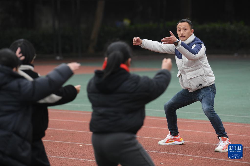 1月21日,在前童鎮中心小學,童攀峰帶領學生們開展舞獅基本動作訓練。