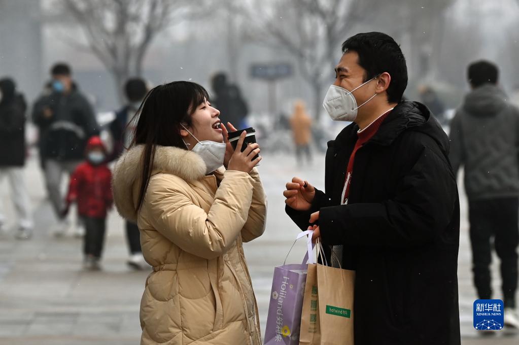 1月23日,市民在西安市未央區一廣場上暢談言歡。