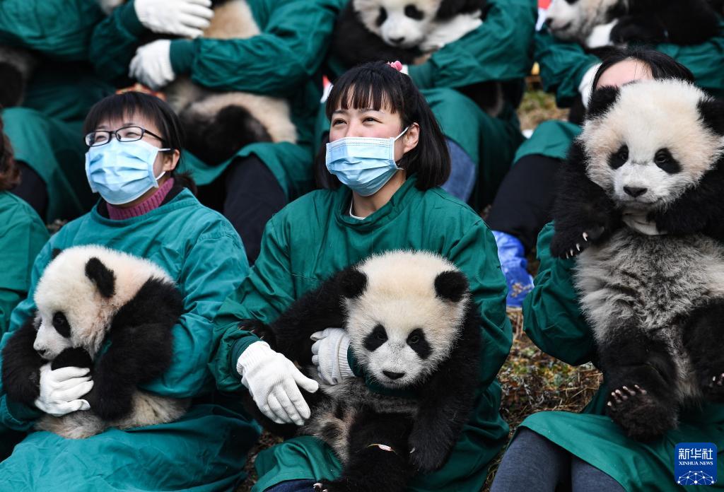 在新春佳節即將到來之際,中國大熊貓保護研究中心20只“2021級”熊貓寶寶亮相臥龍神樹坪基地,向全國人民送上新春祝福。