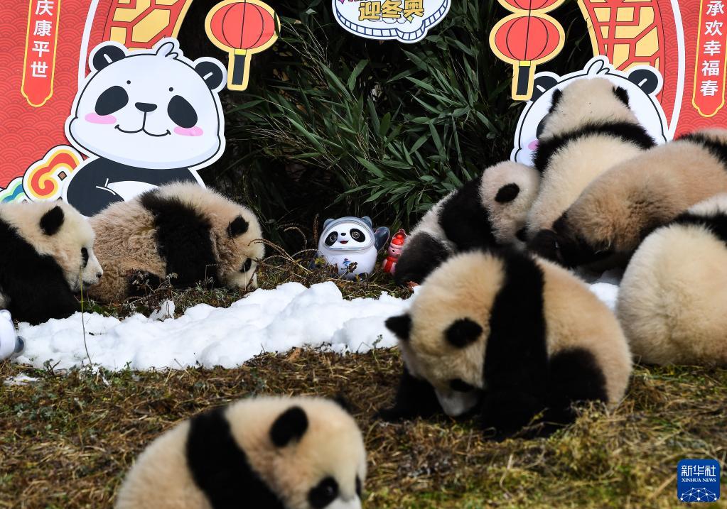 在新春佳節即將到來之際,中國大熊貓保護研究中心20只“2021級”熊貓寶寶亮相臥龍神樹坪基地,向全國人民送上新春祝福。