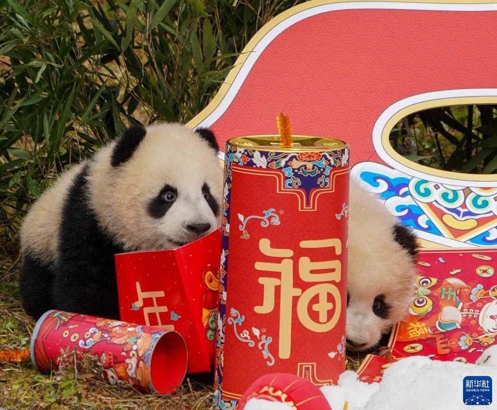在新春佳節即將到來之際,中國大熊貓保護研究中心20只“2021級”熊貓寶寶亮相臥龍神樹坪基地,向全國人民送上新春祝福。
