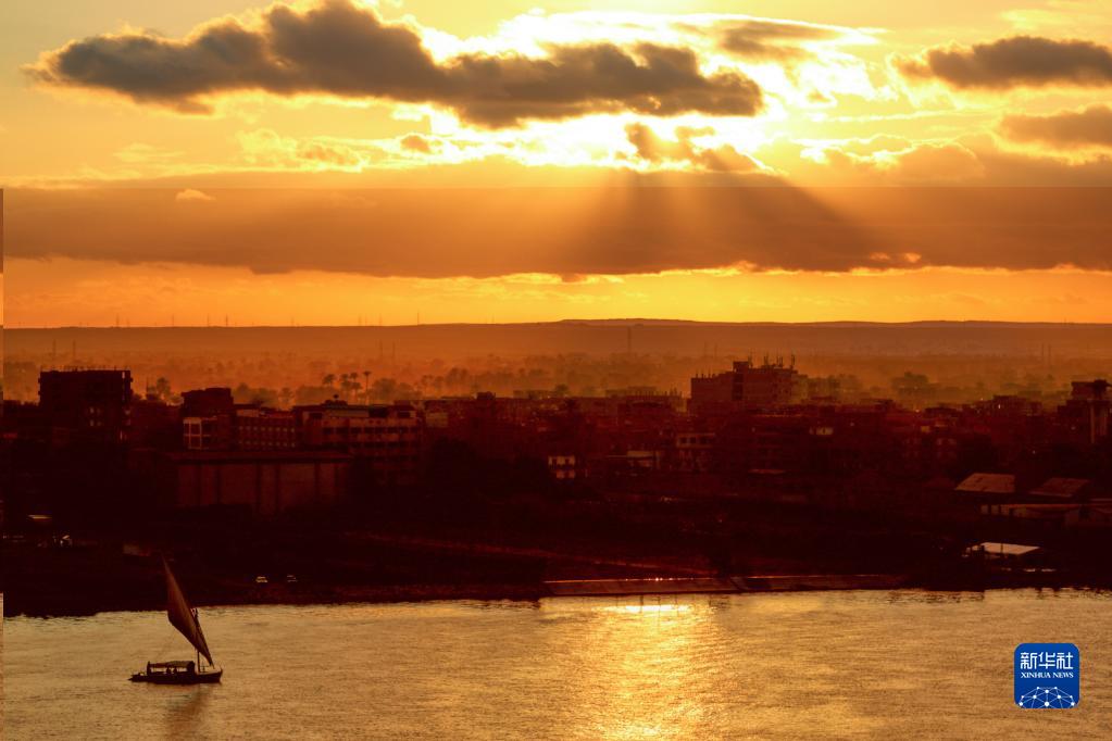 1月26日,一艘帆船行駛在埃及開羅日落時分的尼羅河上。