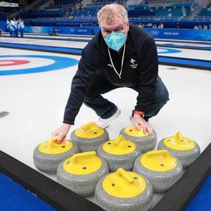 在北京冬奧會冰壺賽事場館國家游泳中心“冰立方”的冰面上,一位身影始終忙碌著,他就是來自加拿大的制冰師漢斯·烏斯里奇。