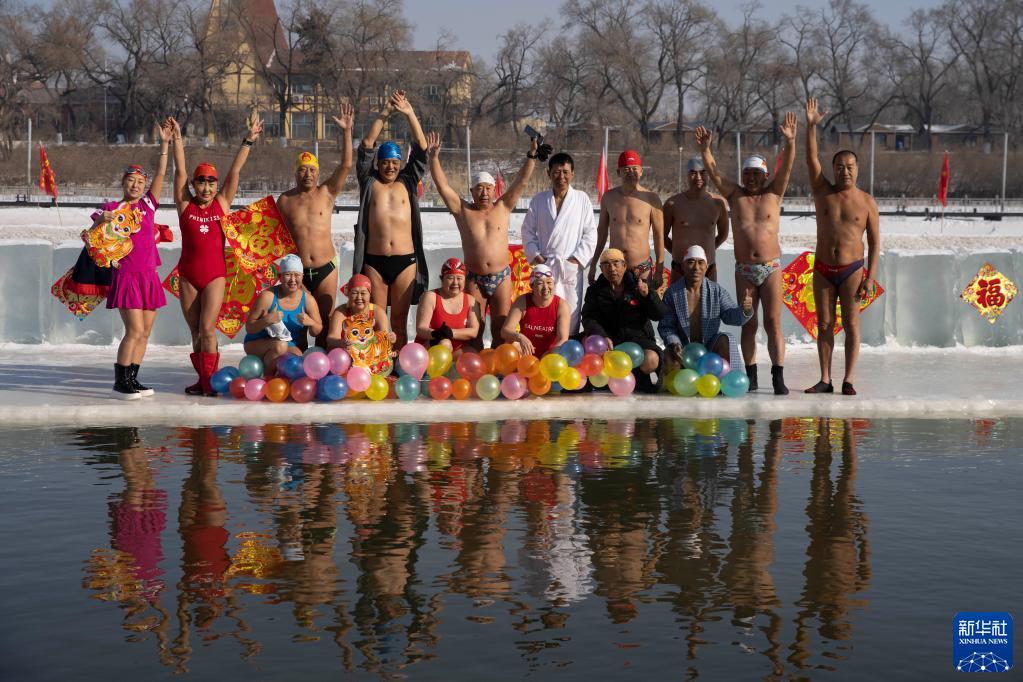 當日是除夕,哈爾濱市冬泳愛好者齊聚松花江,通過冬泳迎接新春佳節。
