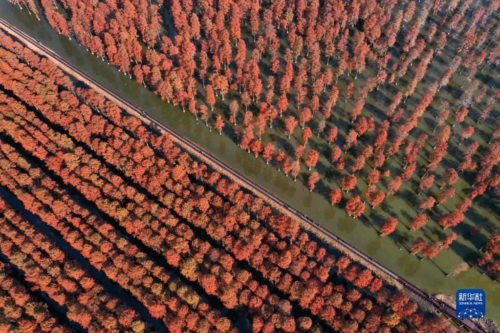 2021年12月3日拍攝的武漢漲渡湖濕地公園“水上森林”景色(無人機(jī)照片)。