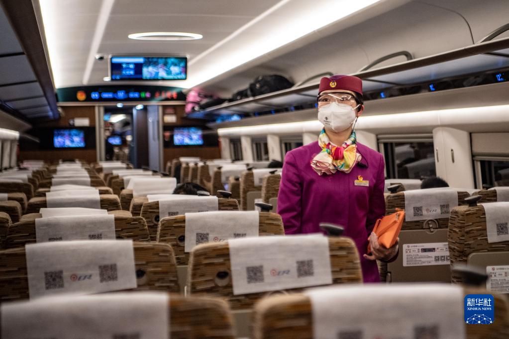 林夢凡在成渝高鐵智能復興號“共青團號”列車上工作(1月27日攝)。