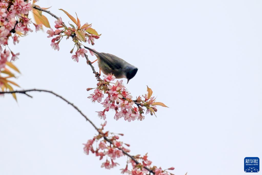 2月4日,在湖南省龍山縣,一只小鳥落在枝頭。