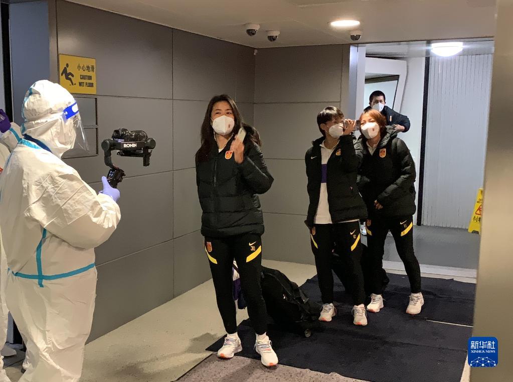 2月7日,中國女足隊員抵達上海浦東國際機場。