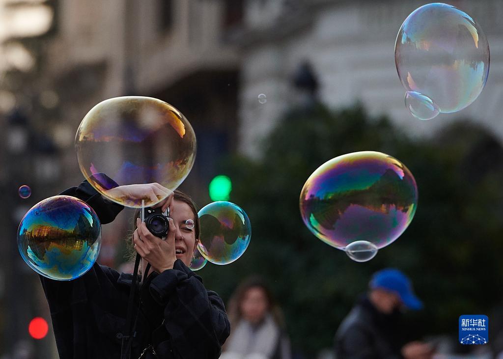 2月11日,一名女子在西班牙巴倫西亞市中心拍攝照片。