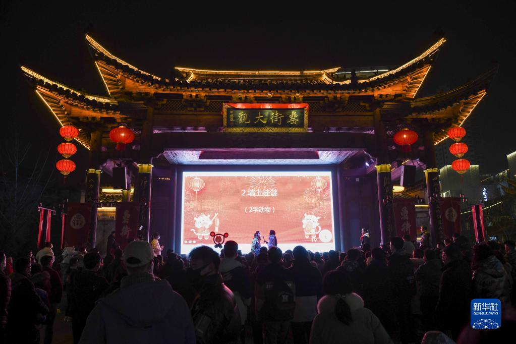 2月15日,市民在合肥罍街夜市參與猜謎活動。