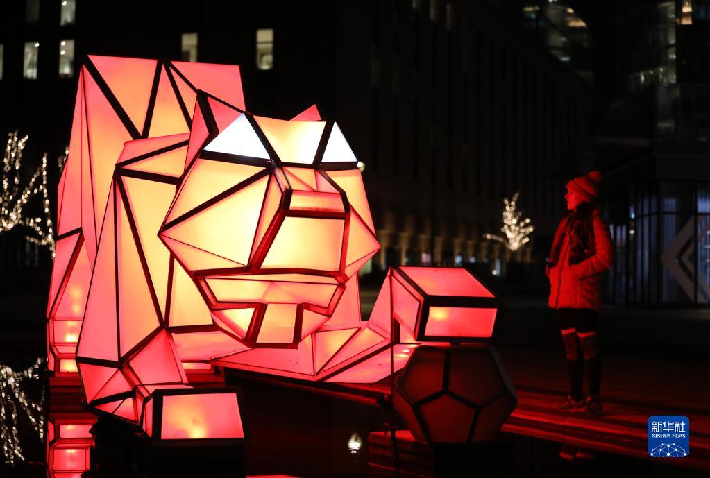 2月17日,在英國倫敦,慶祝中國虎年的燈光藝術裝置在巴特西發電站燈光節上展出。