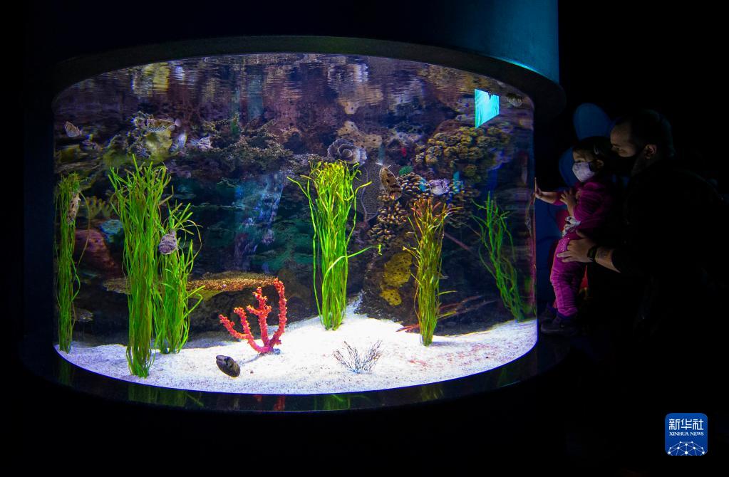 2月21日,游客在加拿大多倫多的里普利水族館內參觀。