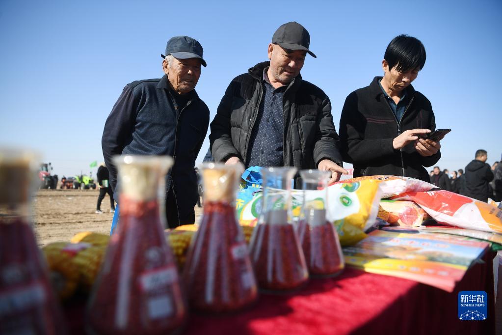 2月24日,農戶在春播生產現場會上了解種子情況。