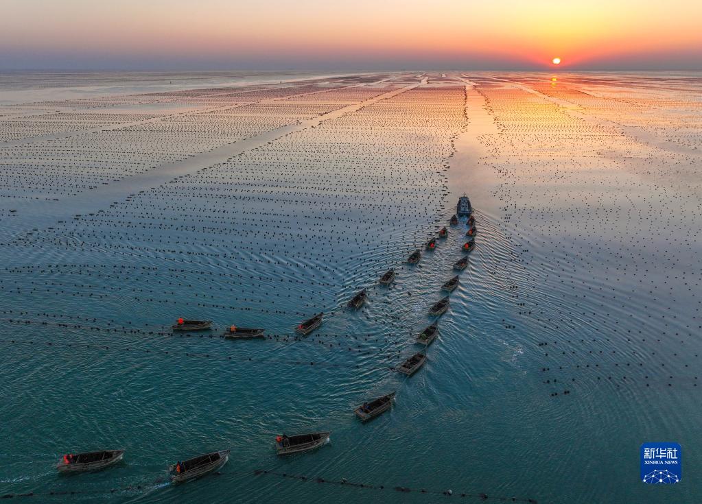 山東榮成的海水養殖面積達56萬畝,眼下正值春季海上生產的重要時期,漁民們駕駛著漁船、舢舨在海面上穿梭,進行藻類管護、更換養殖浮漂等養殖作業,呈現出一派“海上春耕”生產繁忙景象。