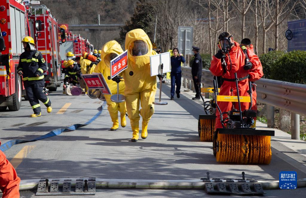 當日,陜西省漢中市在G244國道留壩縣武關驛鎮境內舉行?;返缆方煌ㄊ鹿蕬本仍菥?。新華社發(高文亞 攝)