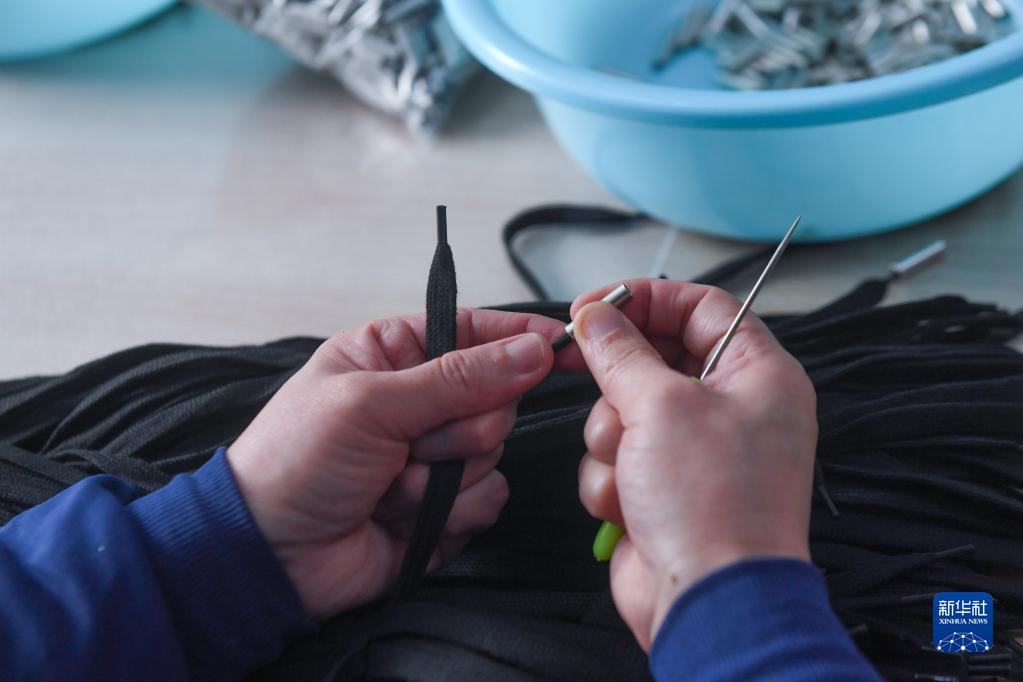 2月23日,在湖州市織里鎮(zhèn)晟舍村殘疾人之家,來自周邊的殘疾人(包括精神殘疾、智力殘疾和肢體殘疾)制作童裝輔料。完成訂單后,他們可以獲得相應(yīng)報酬和補貼。