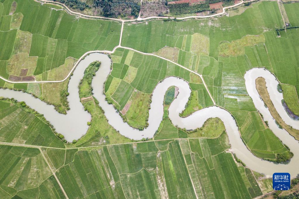 近日,位于海口瓊山區的三十六曲溪濕地公園一片春意盎然。蜿蜒的河道與兩岸的早稻田交織成景,處處散發著春天的生機。