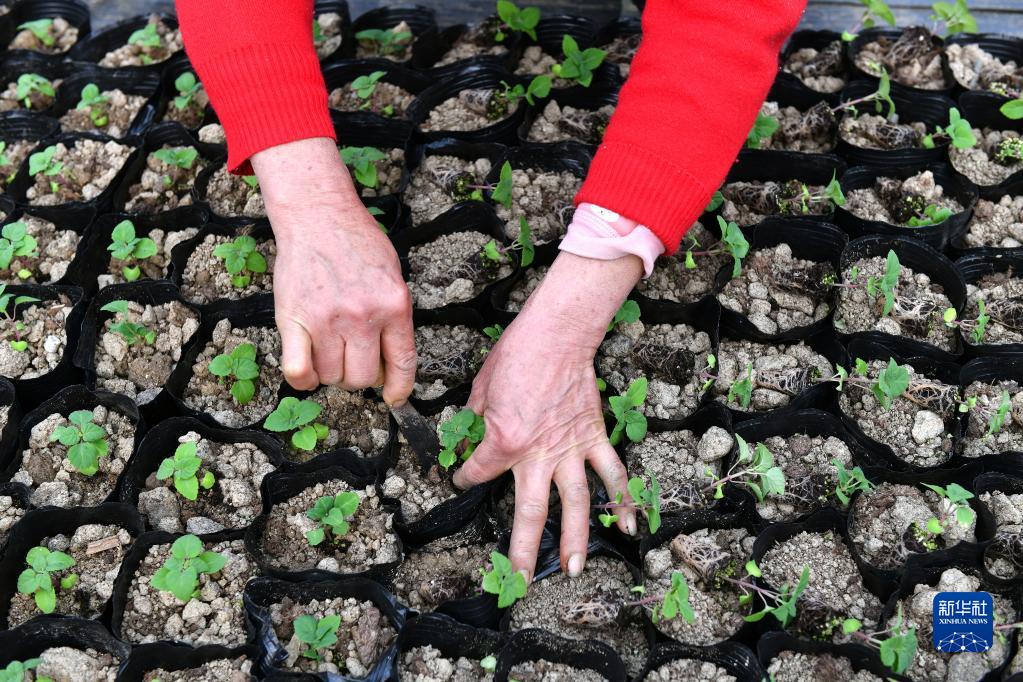 2月27日,湖北省宜昌市秭歸縣茅坪鎮(zhèn)陳家壩村村民在花卉苗木基地栽植苗木。